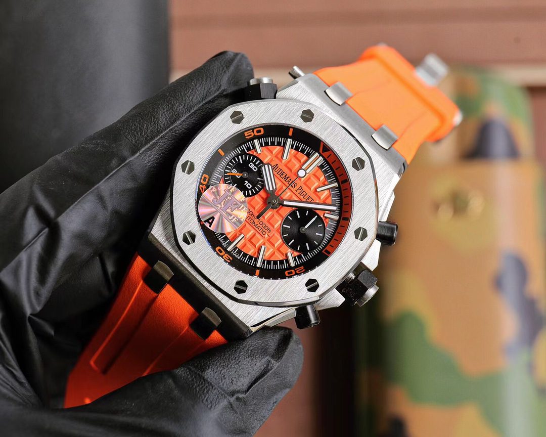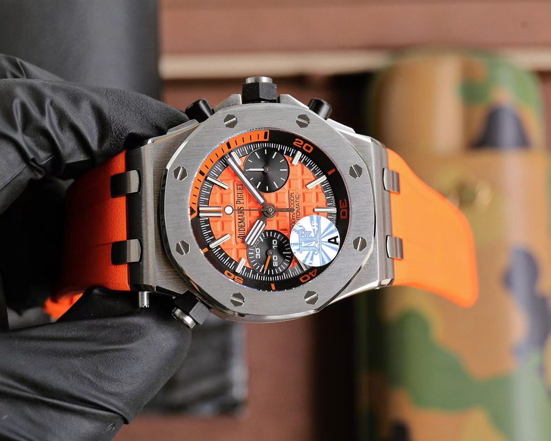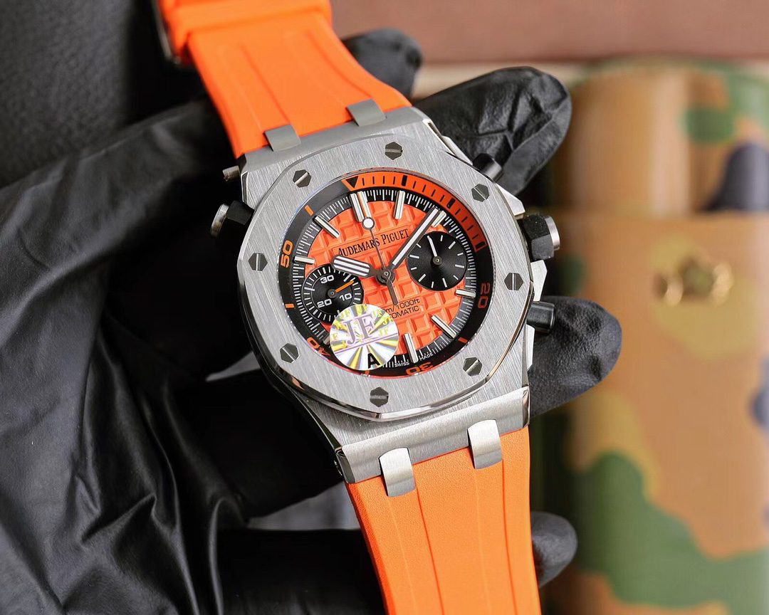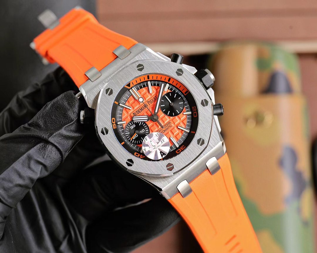 Audemars Piguet Royal Oak Chronograaf met levendige wijzerplaat. Beschikt over 42mm roestvrijstalen kast, Cal.3124 automatisch uurwerk, saffierglas, en fluorrubber band.