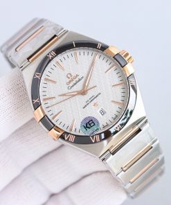 Omega Constellation 5e generatie heren mechanisch horloge. 41mm kast met geïmporteerd automatisch uurwerk aangepast aan Omega 8900 specificaties. Vijf-code authenticatie. 316L roestvrij stalen kast vervaardigd met exclusieve CNC-technologie, gecombineerd met dubbel gebogen saffierglas. Wijzerplaat met duidelijke, uniforme textuur. Roestvrij stalen armband met originele vouwsluiting.