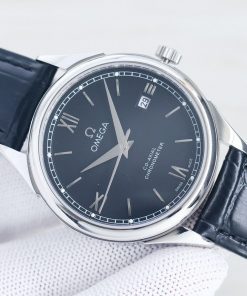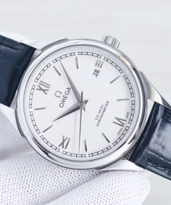 Omega De Ville serie herenhorloge met een 39.5mm kast en ge茂mporteerd 8215 automatisch mechanisch uurwerk. Voorzien van een 316L roestvrijstalen kast en krasbestendig saffierglas. Uitgerust met een Italiaanse kalfsleren band. Vertegenwoordigt klassieke elegantie en precisie.