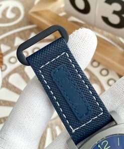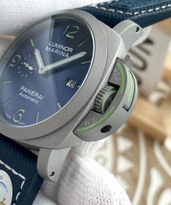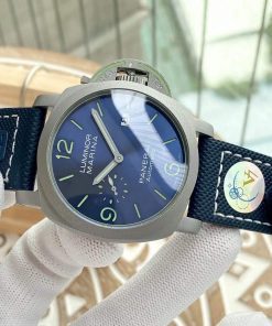 Panerai Luminor Marina, met een levendige groene Super-LumiNova coating voor uitzonderlijke zichtbaarheid in het donker. Vervaardigd met een koolstofvezel composiet kast, AISI 316L geborsteld roestvrij staal, unidirectionele draaibare bezel, en de iconische gepatenteerde kroonbrug. Uitgerust met een V7 fabriek mechanisch uurwerk met datumaanduiding, combineert Italiaanse esthetiek met robuuste functionaliteit.