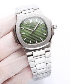 Patek Philippe Nautilus met een verfijnd design. Voorzien van een 42.5mm roestvrijstalen kast, een rubberen band, en een krasbestendig saffierkristal. Uitgerust met een betrouwbaar 9015 uurwerk voor precisie.