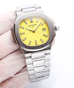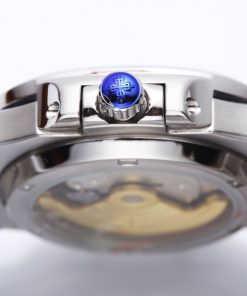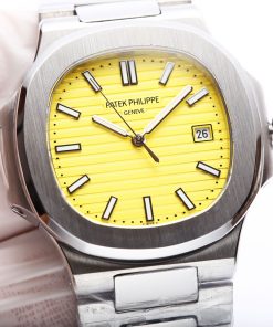 Patek Philippe Nautilus met een verfijnd design. Voorzien van een 42.5mm roestvrijstalen kast, een rubberen band, en een krasbestendig saffierkristal. Uitgerust met een betrouwbaar 9015 uurwerk voor precisie.