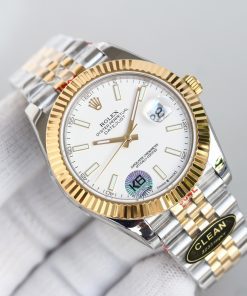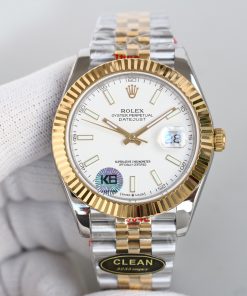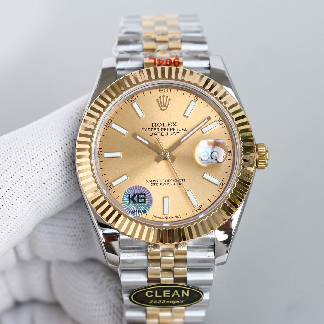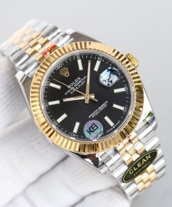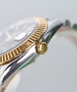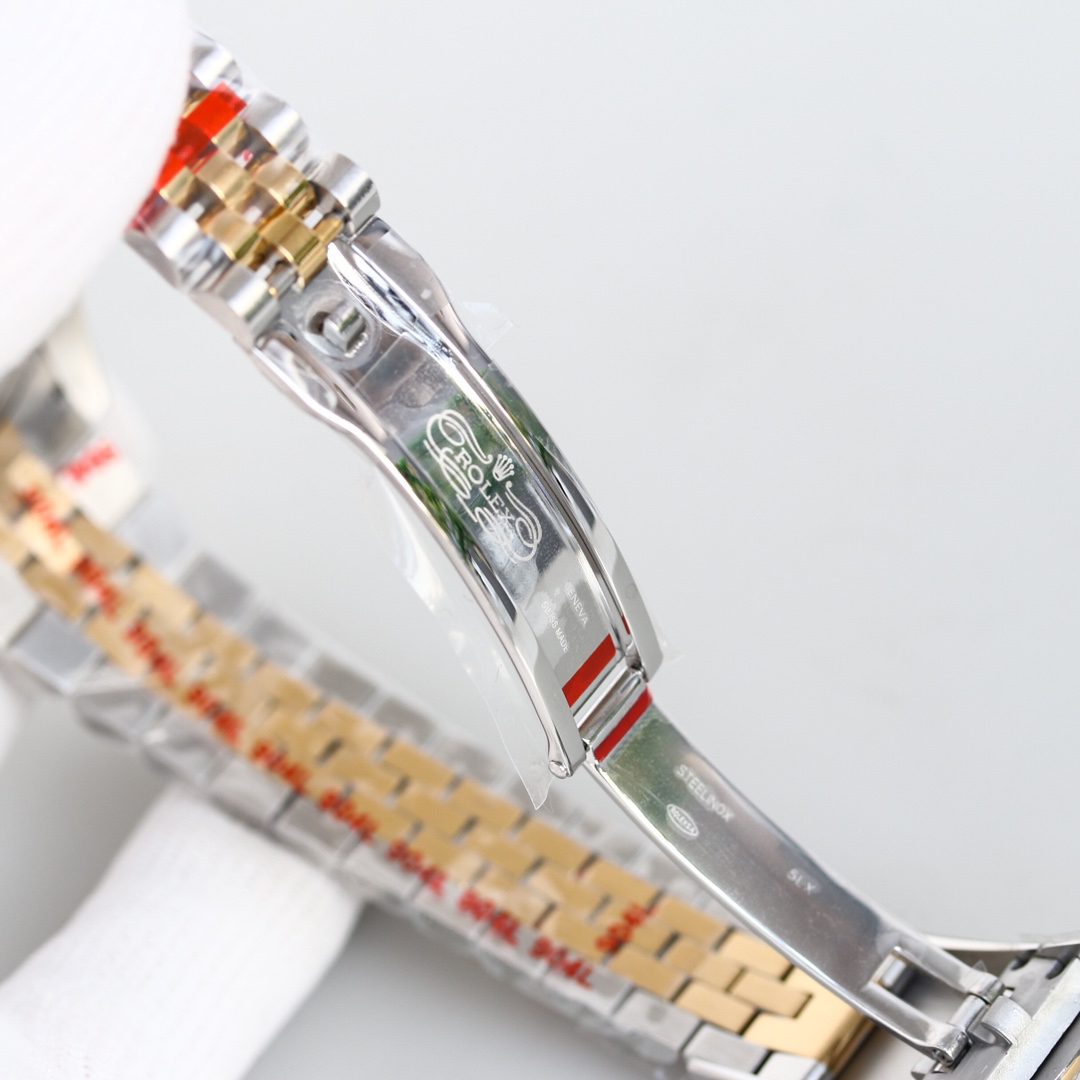 Rolex Datejust. Automatisch mechanisch uurwerk met Seagull 2836-2. 904L roestvrijstalen kast met geribbelde lunette. Krasbestendig saffierglas met cyclops lens. Roestvrijstalen band met Oysterlock sluiting. Super-LumiNova weergave.