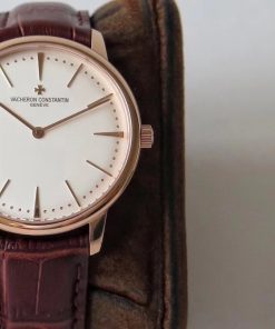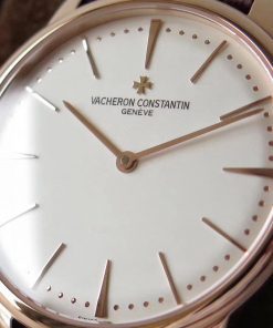 Vacheron Constantin Patrimony ultradun horloge, belichaming van comfort en elegantie. 40mm x 6,8mm kast, het dunste horloge beschikbaar. Minimalistisch ontwerp met ultradun profiel, gebruik makend van een gemodificeerde 9015 uurwerk om de VC.1400 handmatig uurwerk te repliceren, de dunste versie op de markt. Inclusief Zwitsers-ge?mporteerde automatische opwindpen en Vacheron Constantin originele USB-stick.